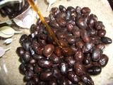 完成した煮豆が硬い場合、シロップごとレンジ弱 8-10分を目安に加熱します。 シロップに洋酒の香りをつけて、お洒落な演出を。