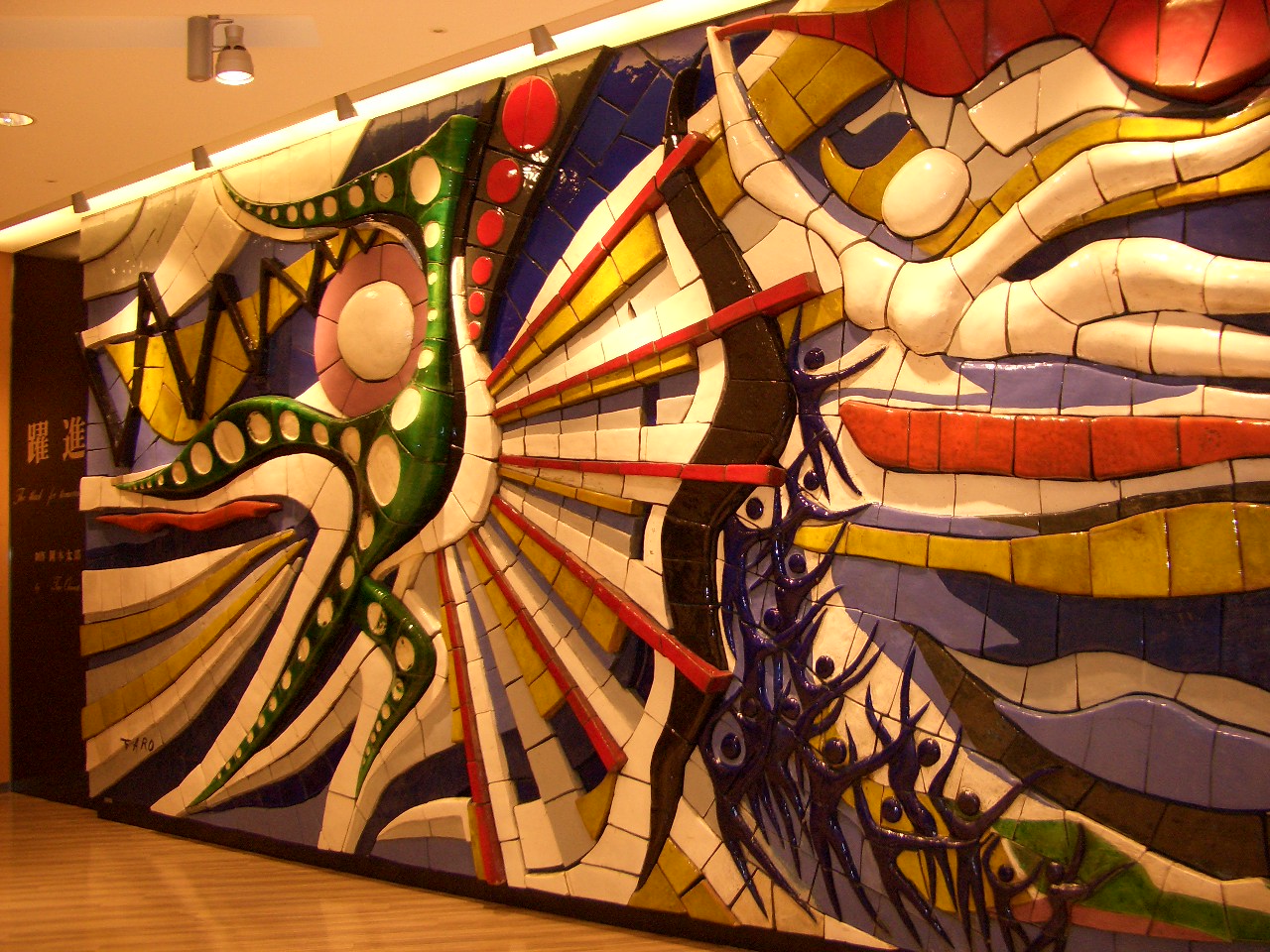 「グラスの底に顔があっても良いじゃないか」。 そう、世界に名を轟かせた日本の天才芸術家 岡本太郎氏の陶板画「躍進」。