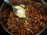 3.アーモンド(1.)を入れて、白い粉が吹くまでかきまぜた後、余分な砂糖をふるい落とします。