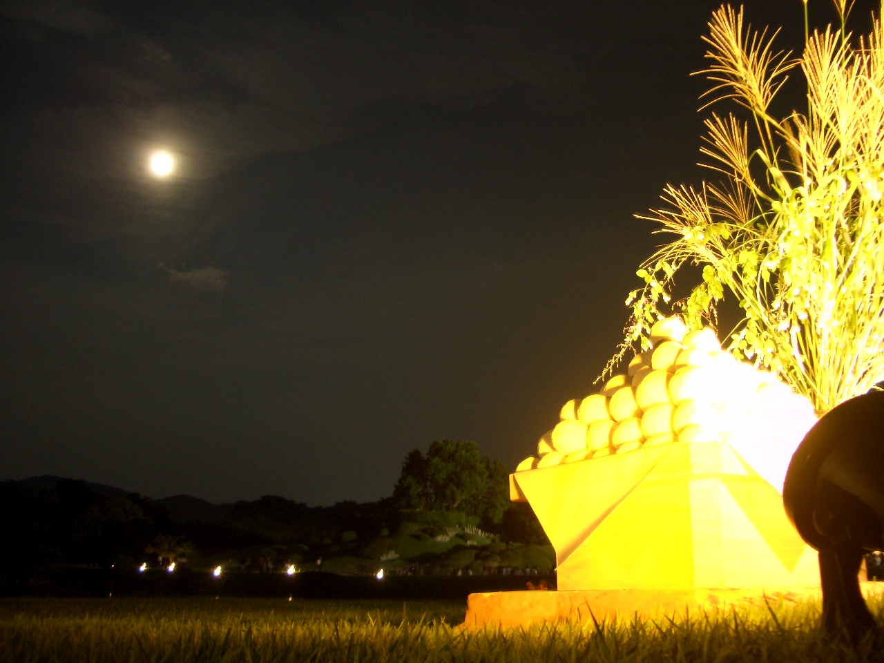 「 名園の満月に集う大勢の人 」