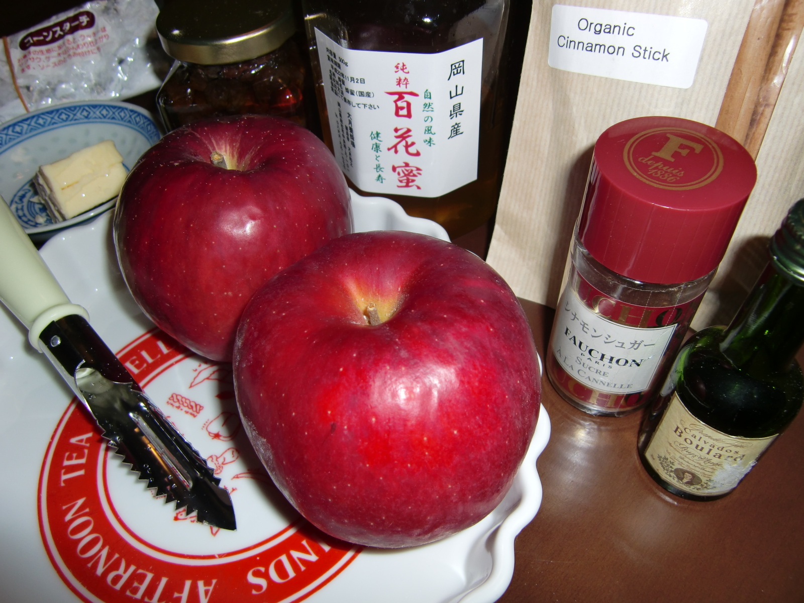・バター 20g ・はちみつ 大さじ3 ・カルヴァドス(りんごブランデー) 少々 ・コーンスターチ 少々
