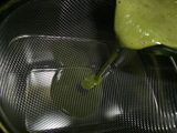 2.ミキサーに水300ccを入れ、地粉・メープルシュガー・抹茶を入れ、3分ほど回し、外郎の生地を作ります。