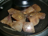 焦げ易いので火加減を弱めにして、じっくり焼き上げます。 マグロやブリやサワラなども、鍋照り焼きに向いていると思います。