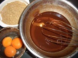 2.別のボウルに、そば粉 50g ・もち粉・きび糖を入れて菜箸(さいばし)でかき混ぜ、熱湯を数回に分けて注ぎ、そぼろ状になるまで かき混ぜます。